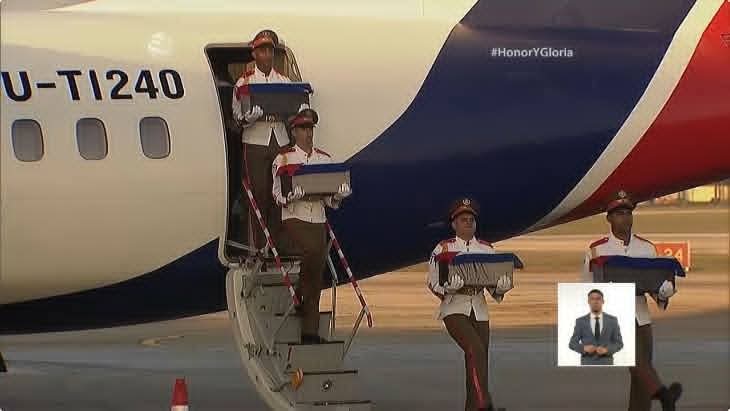 En la ceremonia, y en presencia del General de Ejército Raúl Castro Ruz, y el Primer Secretario del Comité Central del Partido y Presidente de la República, Miguel Díaz-Canel, el General de Cuerpo de Ejército Álvaro López Miera, ministro de las Fuerzas Armadas Revolucionarias (FAR), afirmó que Cuba recibe hoy a los caídos convertidos en héroes.