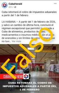 El Ministerio de Finanzas y Precios de Cuba aclaró este miércoles que continúa vigente hasta el 31 de enero de 2026 la exención arancelaria a la importación sin carácter comercial de alimentos, productos de aseo e insumos médicos, ante la circulación en redes sociales de informaciones erróneas sobre el supuesto fin de este beneficio.