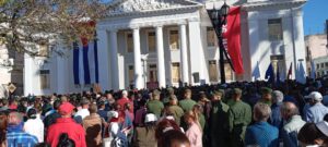 Encabezado por el Primer Secretario del Partido Comunista de Cuba en Cienfuegos, Armando Carranza Valladares, y Yolexis Rodríguez Armada, Gobernadora, aconteció el acto en el parque José Mart, ocasión para ratificar la firme decisión de los cienfuegueros de defender el suelo patrio ante cualquier agresión del gobierno de Estados Unidos.