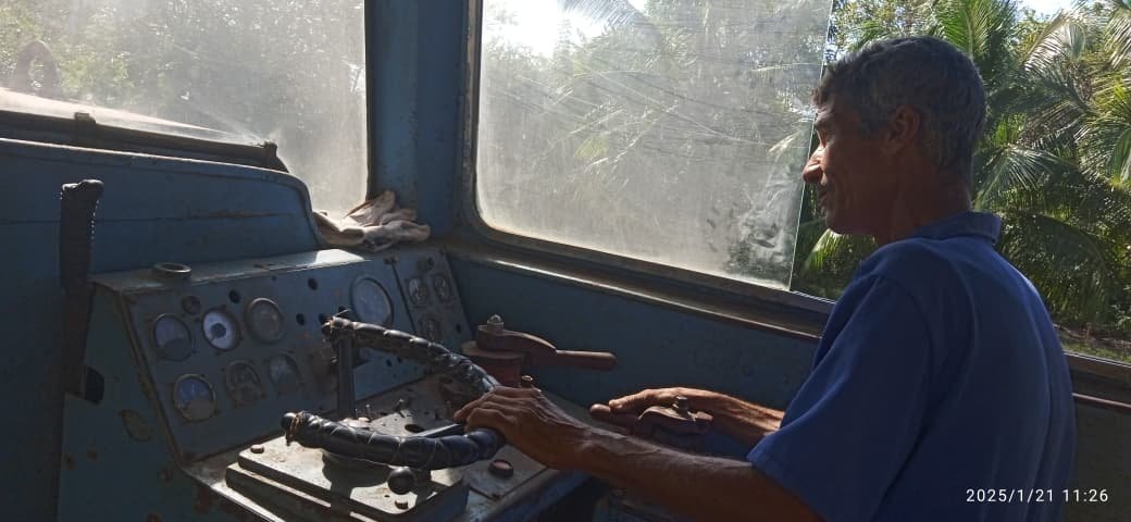 Faustino Vázquez Sierra, inspector de los ferrocarriles, explicó que los carros de la gramínea tirados por las locomotoras rusas tienen más de cien años de explotación y se mantienen gracias al trabajo innovador del equipo de Ferroazúcar.